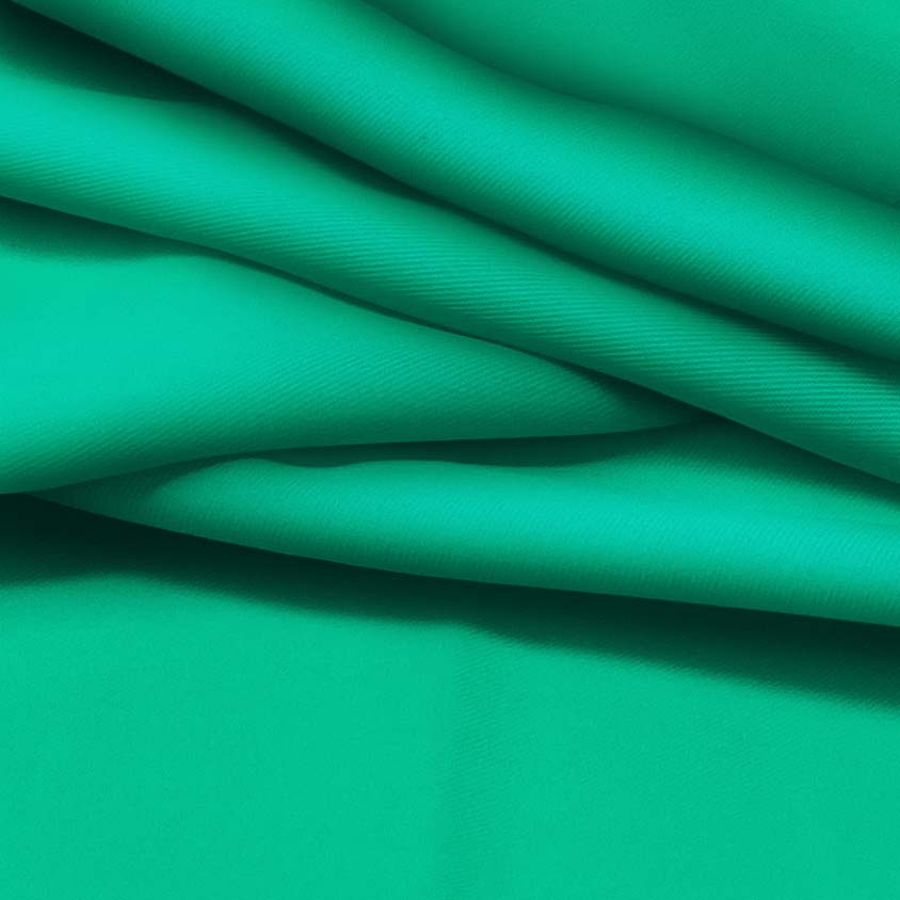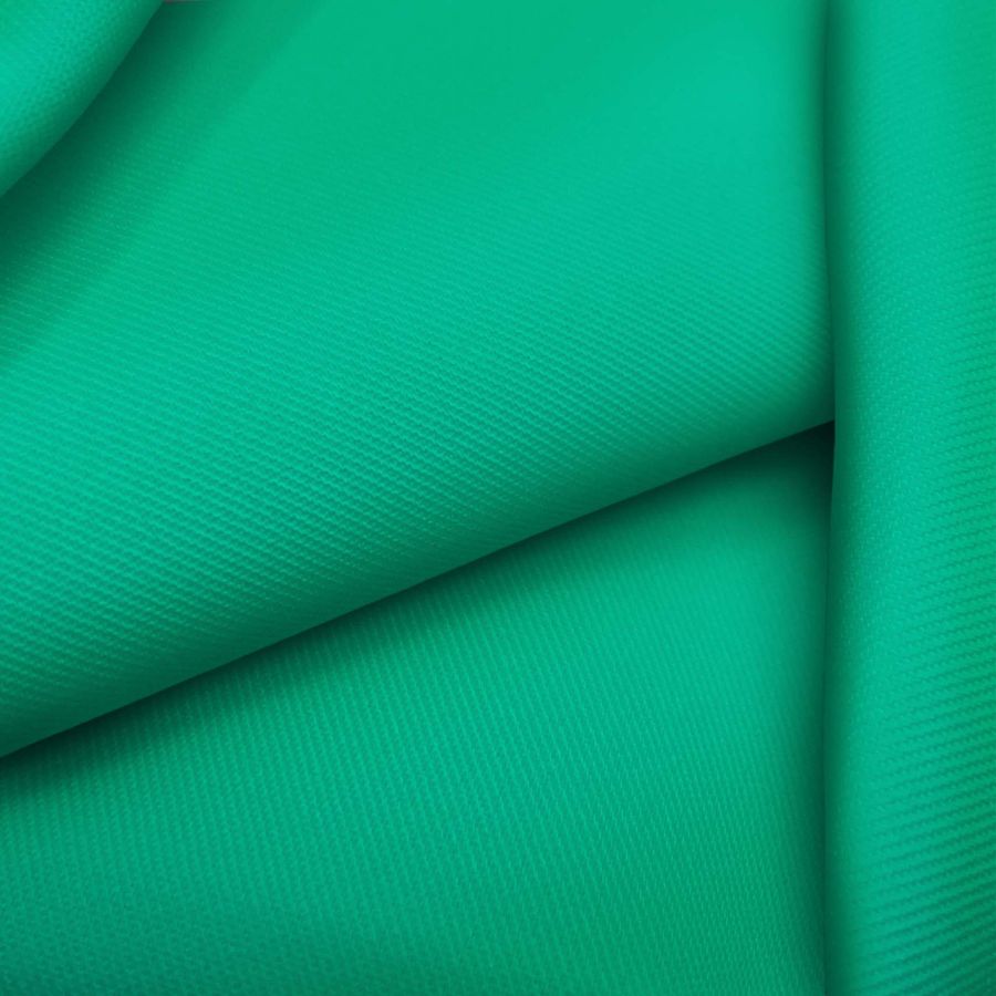 La tela base es una suave Sarga - Prada, compuesta por un 96% de poliéster y un 4% de elastano, con 220 gramos por metro cuadrado y un ancho de 150 cm. El color impreso es un verde mar con un CMYK de 73 0 61 0 y está impreso a una sola cara mediante impresión digital textil. El color verde mar evoca la naturaleza y la tranquilidad del mar, es un color que combina muy bien con tonos tierra. La tela se caracteriza por una textura suave y delgada.