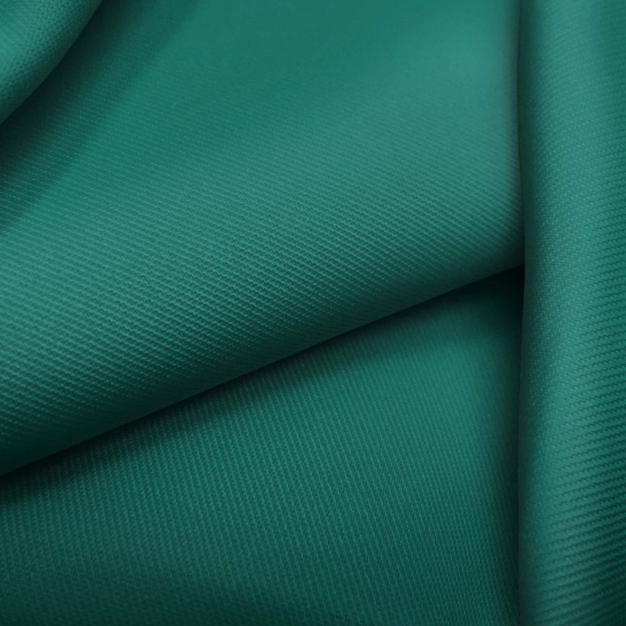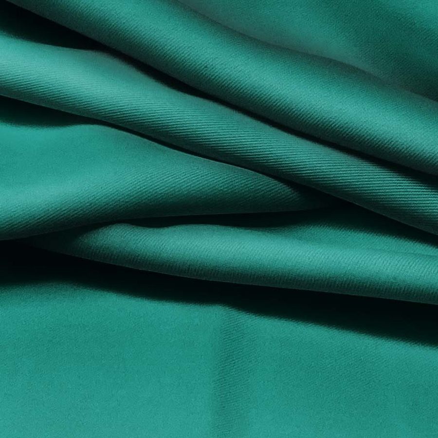 La tela base es una Sarga - Prada con una composición de 96% POLIÉSTER y 4% ELASTANO, de gramaje 220 gr/m2 y ancho de 150 cm. El color liso impreso es un verde ópalo con un CMYK de 89 36 63 34. Este color secundario se puede describir como un tono fresco y suave, que evoca la naturaleza y la serenidad. Combina especialmente bien con tonos neutros como el blanco, el beige y el gris, pero también puede funcionar con tonos más intensos como el azul o el morado.