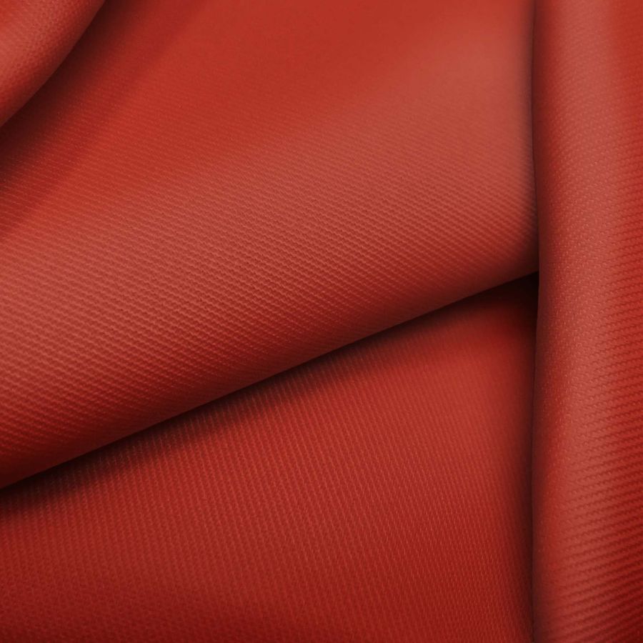 La tela base de este tejido es la Sarga - Prada, la cual está compuesta en un 96% por poliéster y en un 4% por elastano, lo que le confiere una textura y tacto suave y delgados. Este tipo de tela tiene un gramaje de 220 gr/m2 y su ancho es de 150 cm. El color liso impreso en este tejido es el Rojo Tomate, el cual tiene los siguientes atributos de color: Tinta Cyan: 24, Tinta Magenta: 96, Tinta Yellow: 100, Tinta Black: 21 y un CMYK de 24 96 100 21.