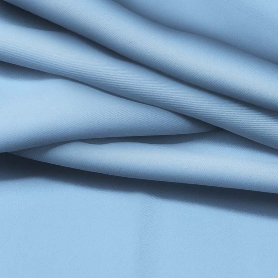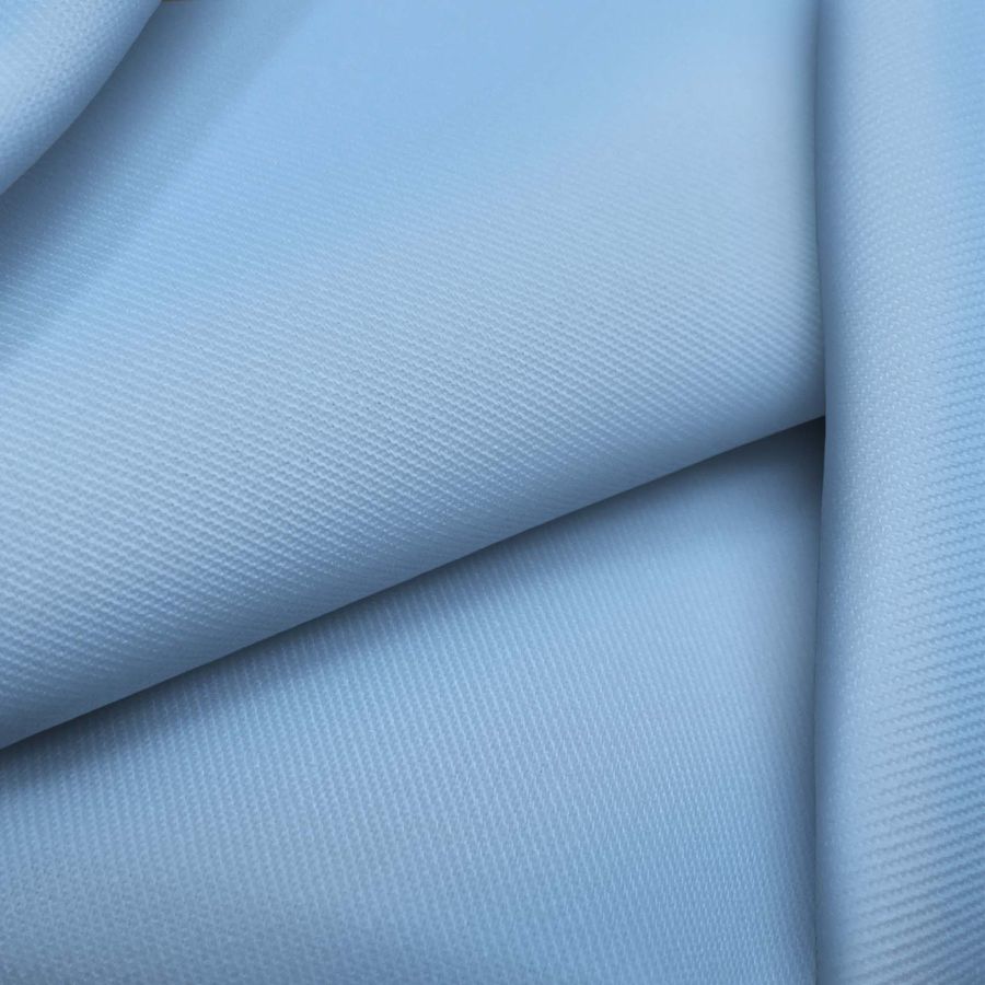 La tela base de este tejido es una sarga de poliéster y elastano, con un gramaje de 220 gr/m2 y un ancho de 150 cm. Su color liso es azul cielo, con una tinta Cyan del 45 y una Magenta del 14, sin presencia de Yellow ni Black en el CMYK. Este color representa la serenidad y la frescura, ideal para la temporada de verano. Combina perfectamente con tonos suaves como el blanco, el beige o el rosa pastel. Cabe destacar que el tejido está impreso con el color liso a una sola cara por impresión digital textil, lo que significa que no es un tejido tintado sino impreso por una sola cara.