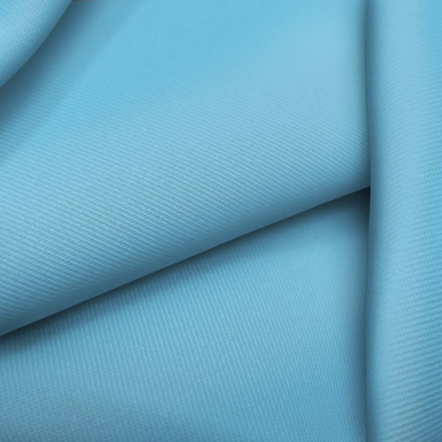 La tela base de este tejido es la Sarga - Prada, compuesta por 96% POLIÉSTER y 4% ELASTANO, con un gramaje de 220 gr/m2 y un ancho de 150 cm. El color liso impreso es de un tono Azul claro, representado por el CMYK 55 3 0 0. Este color tiene una fuerte simbología en la psicología del color, siendo relajante y agradable a la vista. El Azul claro es un color secundario fresco, asociado con la tranquilidad y el optimismo. Va bien con tonos tierra cálidos y brillantes, así como con el blanco y el negro.