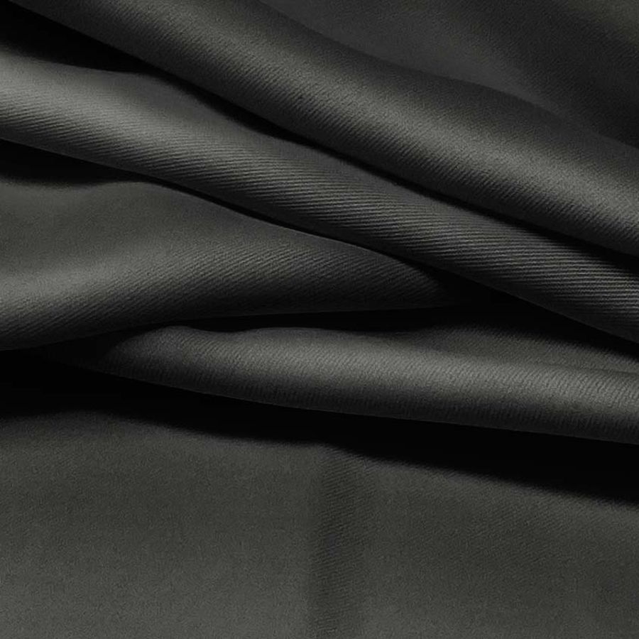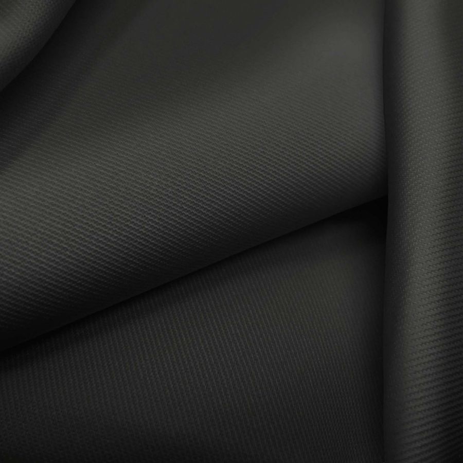 La tela base de este tejido es la sarga - Prada, compuesta en un 96% de poliéster y un 4% de elastano, con un gramaje de 220 gr/m2 y un ancho de 150 cm. El color liso impreso es negro o carbón, con un valor CMYK de 0 0 0 100, lo que indica que no tiene presencia de cian, magenta ni amarillo en su composición, siendo el negro puro su único componente. Este color aporta una sensación de elegancia, sobriedad y solemnidad al tejido, y se puede combinar perfectamente con otros tonos oscuros o neutros, como el gris, el blanco o el dorado.