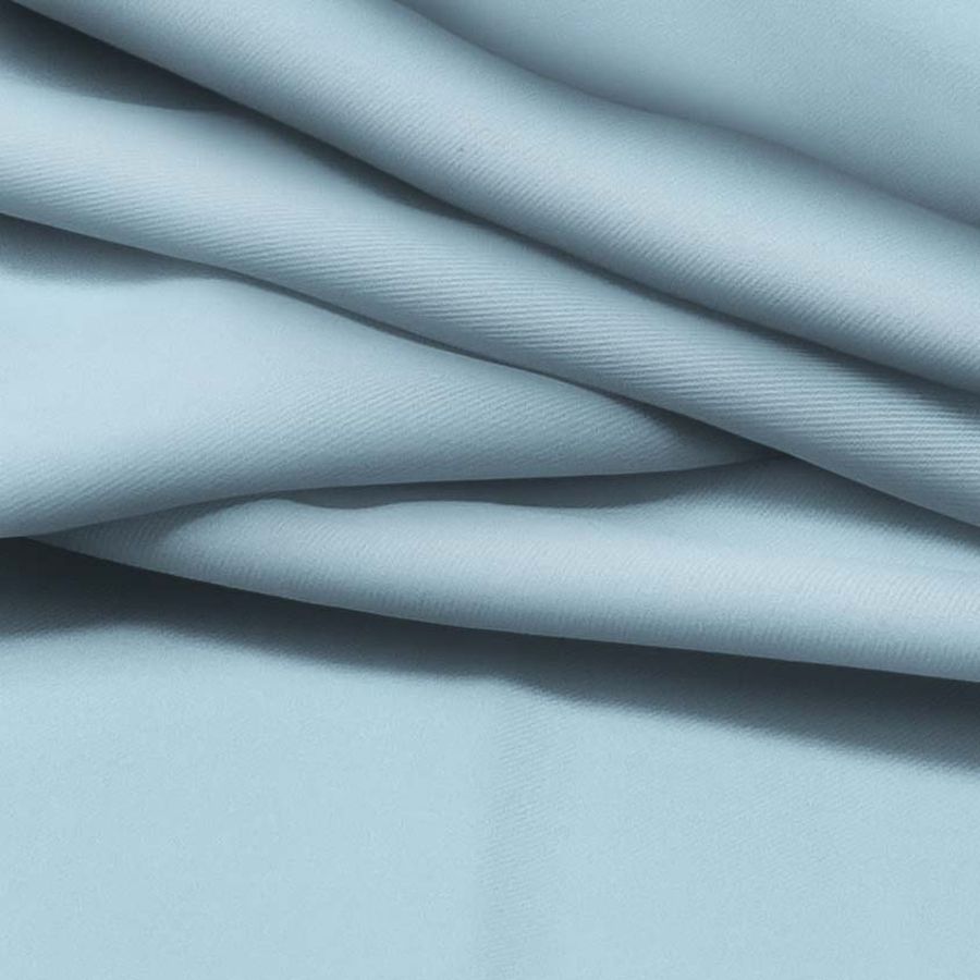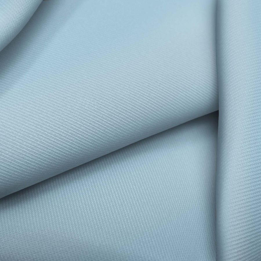 La tela base de este tejido es Sarga-Prada, compuesta por un 96% de poliéster y un 4% de elastano, con un gramaje de 220 gr/m2 y un ancho de 150 cm. El color liso impreso en esta tela es Azul Glaciar, compuesto por una tinta Cyan de 37, una tinta Magenta de 6, una tinta Yellow de 6 y una tinta Black de 0, con un CMYK de 37 6 6 0. El color Azul Glaciar es un tono frío y elegante que simboliza la pureza y la paz. Combina perfectamente con colores marrones y grises, y con tonalidades de rosa y verde.