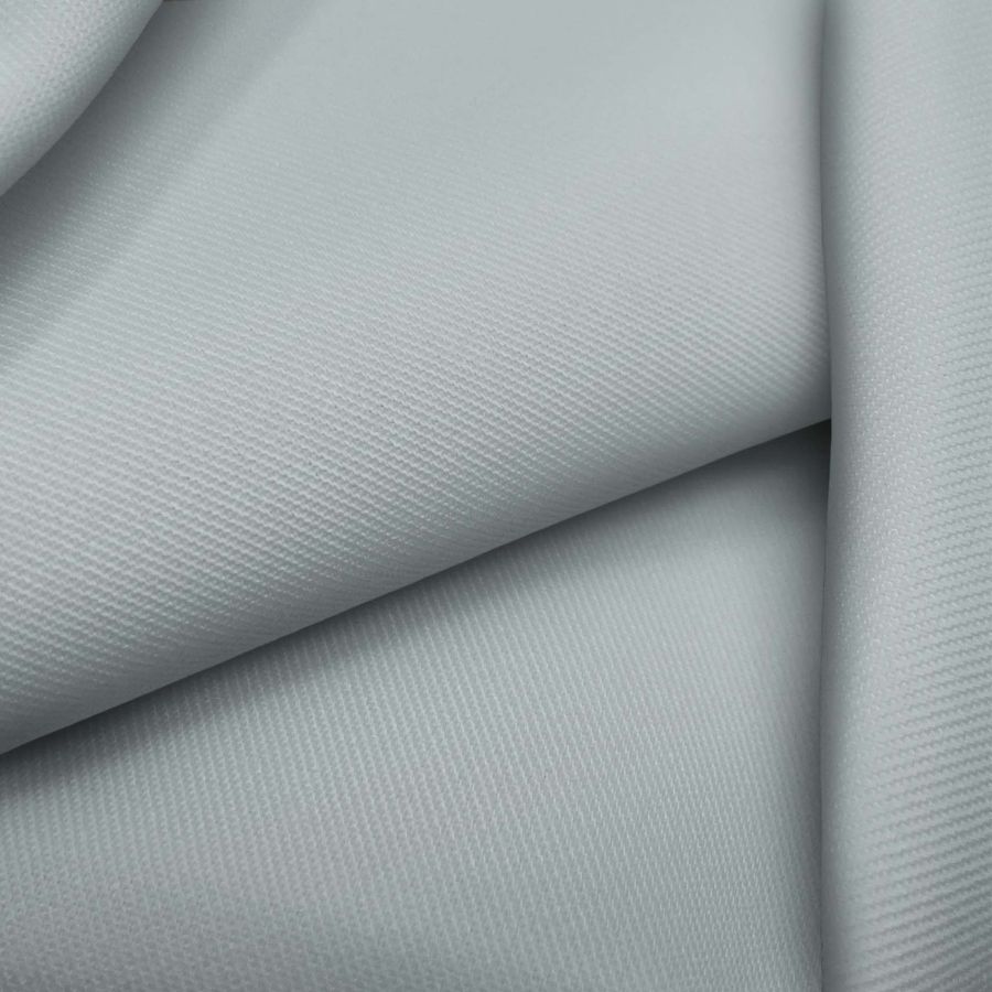 La tela base es la Sarga - Prada, compuesta por un 96% de poliéster y un 4% de elastano, con un gramaje de 220 gr/m2 y un ancho de 150 cm. El color liso impreso es de un tono Azul niebla, con valores CMYK de 33 17 22 1. Este color es un tono suave y relajante, que evoca un ambiente fresco y limpio. Se combina con colores como el blanco, el beige y el gris claro, para crear una paleta relajante de tonos suaves.