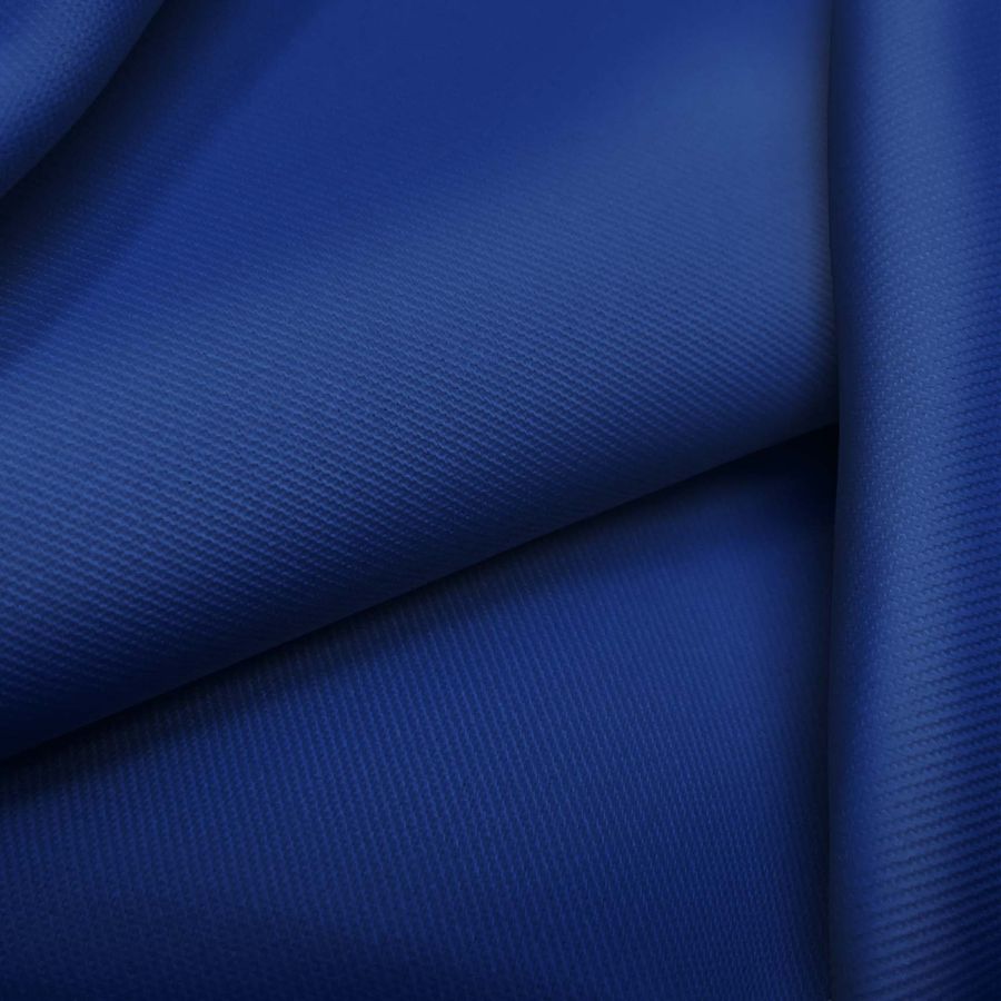 La tela base de este tejido es la Sarga-Prada, compuesta por un 96% de poliéster y un 4% de elastano, con un gramaje de 220 gr/m2 y un ancho de 150 cm. Está disponible en un color liso impreso de tonalidad azul real, con un CMYK de 100 89 35 23 y un tacto suave y delgado. Este color secundario se identifica por ser vibrante, profundo y lleno de personalidad, y combina perfectamente con tonalidades como el blanco, amarillo y rosa, para crear un equilibrio tonal y visualmente atractivo. Este tejido está impreso con el color liso a una sola cara por impresión digital textil, lo que permite una alta calidad de impresión y una resolución de detalles excepcional.