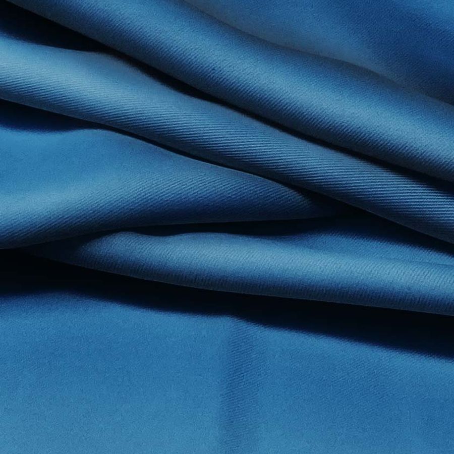 La tela base de la que hablamos es una sarga Prada compuesta por un 96% de poliéster y un 4% de elastano, con un gramaje de 220 gr/m2 y un ancho de 150 cm. El color liso impreso es un azul seda, cuyo contenido de color se expresa en un CMYK de 98 71 31 17. Este color representa una tonalidad azul pálida, suave y delicada, que simboliza la tranquilidad y la armonía. Combinado con otros colores como el blanco, el negro o el gris, crea una sensación de elegancia y sobriedad, mientras que con tonos cálidos como el rosa o el amarillo, aporta un toque más juvenil y fresco.