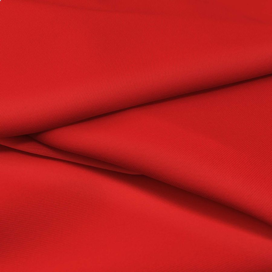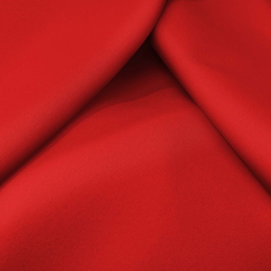 La tela base, Sarga Bielástica - Lisboa, es una sarga compuesta por un 97% de poliéster y un 3% de elastano, con un gramaje de 209 gr/m2 y un ancho de 150 cm. El color liso impreso es Rojo Lujuria, con un CMYK de 8 97 94 1. Este color se caracteriza por su fuerte connotación emocional, representando la pasión y el deseo, y combina a la perfección con tonalidades neutras como el blanco, el negro o el gris.