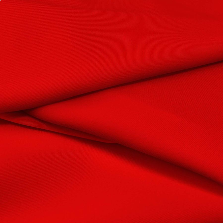 La tela base de esta pieza es la Sarga Bielástica-Lisboa, compuesta por un 97% de poliéster y un 3% de elastano, con un gramaje de 209 gr/m2 y un ancho de 150 cm. El color impreso es un rojo pigmento con un CMYK de 3 100 100 1. Esta tonalidad se caracteriza por su intensidad y viveza, generando un efecto visual impactante y audaz en la prenda. El color secundario se combina especialmente bien con tonalidades aguamarina y turquesa, generando una armonía de colores fresca y vibrante. Es importante resaltar que la tela está impresa a una sola cara por impresión digital textil, lo que significa que la tonalidad sólo se aplica en el tejido por una de las caras.
