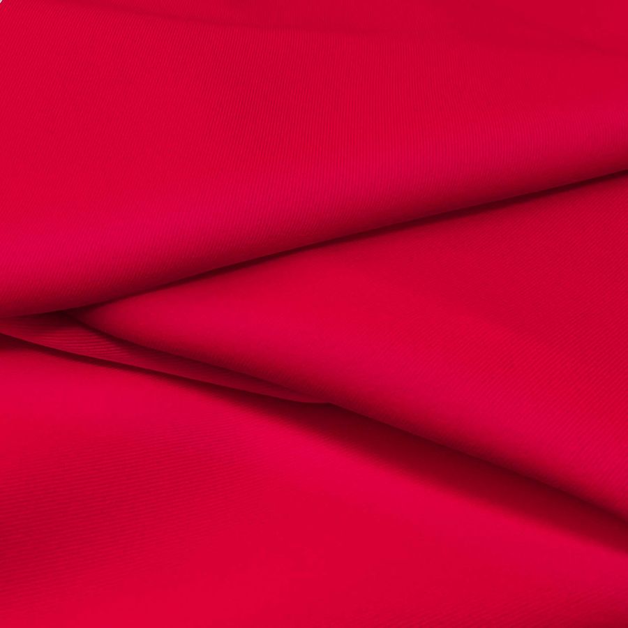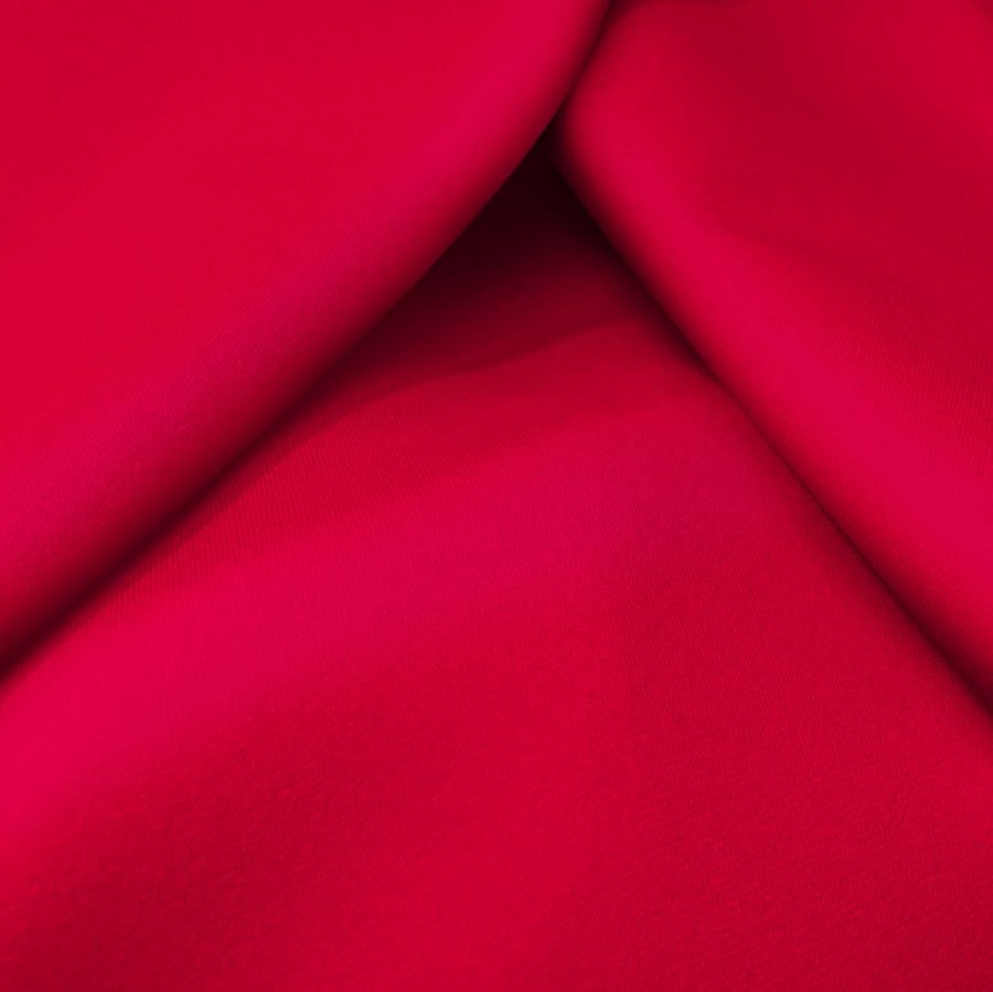 La tela base, Sarga Bielástica - Lisboa, es una sarga de composición 97% poliéster y 3% elastano con un peso de 209 gr/m2 y un ancho de 150 cm. El color liso impreso es un carmín rojo con una CMYK de 0 100 77 0. Este color simboliza la pasión, el amor y la energía, y se combina en particular con tonos cálidos como marrones y naranjas.