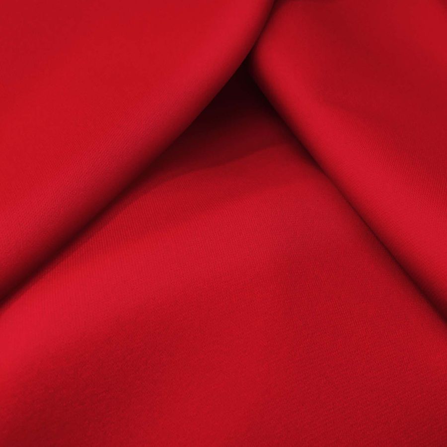 La tela base, Sarga Bielástica - Lisboa, está compuesta por un 97% de poliéster y un 3% de elastano, con un gramaje de 209 gr/m2 y un ancho de 150 cm. Su atractivo color liso impreso es el Rojo Español, con un contenido de CMYK de 15 100 93 5, siendo predominantemente magenta y amarillo, con toques de cian y negro. Este color vibrante evoca pasión y vitalidad, y combina especialmente bien con tonalidades neutras como el blanco y el negro, así como con tonos tierra.