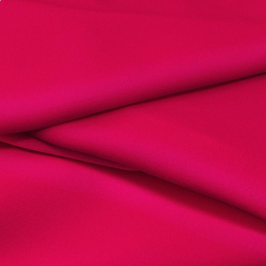 La tela base es la Sarga Bielástica - Lisboa, compuesta por 97% de poliéster y 3% de elastano con un gramaje de 209 gr/m2 y un ancho de 150 cm. El color liso impreso es Rojo Pinzón Rosado con un CMYK de 3 99 59 0. Este color se caracteriza por tener una gran intensidad y contraste, una tonalidad cálida y vibrante, que combina perfectamente con tonalidades neutras como blanco o gris claro.