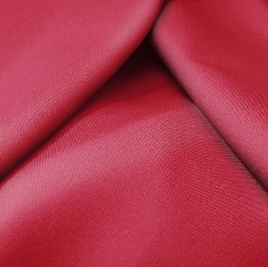 La tela base es una Sarga Bielástica - Lisboa de composición 97% poliéster y 3% elastano con un gramaje de 209 gr/m2 y un ancho de 150 cm. El color liso impreso es Rojo Rubí, cuyo CMYK es 22 96 67 14. Este color es vibrante y audaz, transmitiendo pasión y energía. Combina bien con tonos neutros como el blanco, negro y gris, pero también se puede combinar con tonos verdes y azules para crear un efecto más fresco y veraniego.