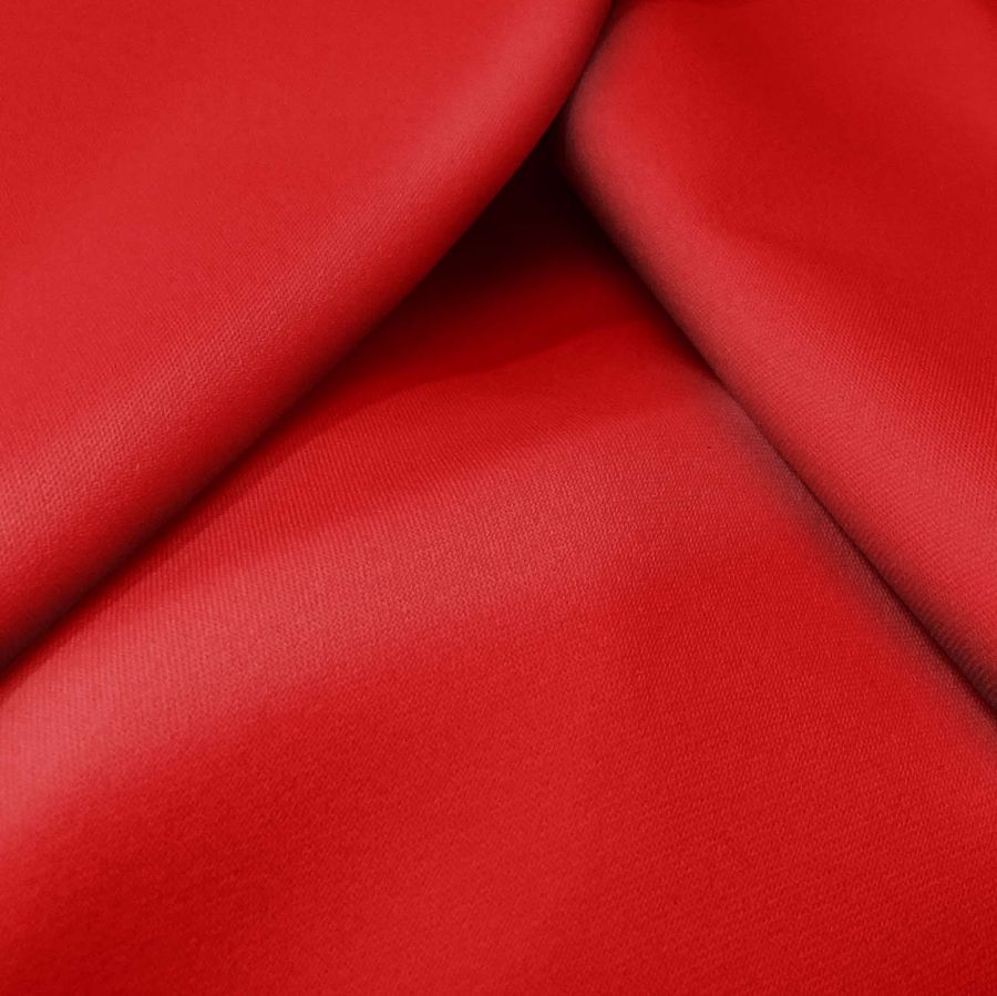 La tela base de este tejido es la Sarga Bielástica - Lisboa, con una composición de 97% poliéster y 3% elastano. Su gramaje es de 209 gr/m2 y tiene un ancho de 150 cm. El color liso impreso en esta tela es el Rojo Cresta de gallo, que se obtiene a través de la técnica de sublimación con los atributos de tinta CMYK de 17 100 100 8.