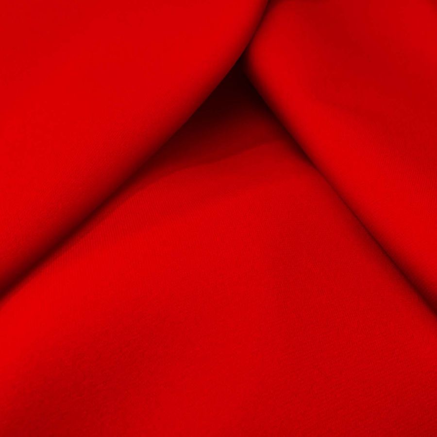 La tela base de esta prenda es de Sarga Bielástica - Lisboa, una sarga compuesta por un 97% de poliéster y un 3% de elastano con un gramaje de 209 gr/m2 y un ancho de 150 cm. El color liso impreso que se utiliza en esta tela es rojo langosta, con un CMYK de 0 98 100 0, lo que nos da un tono naranja rojizo intenso.
