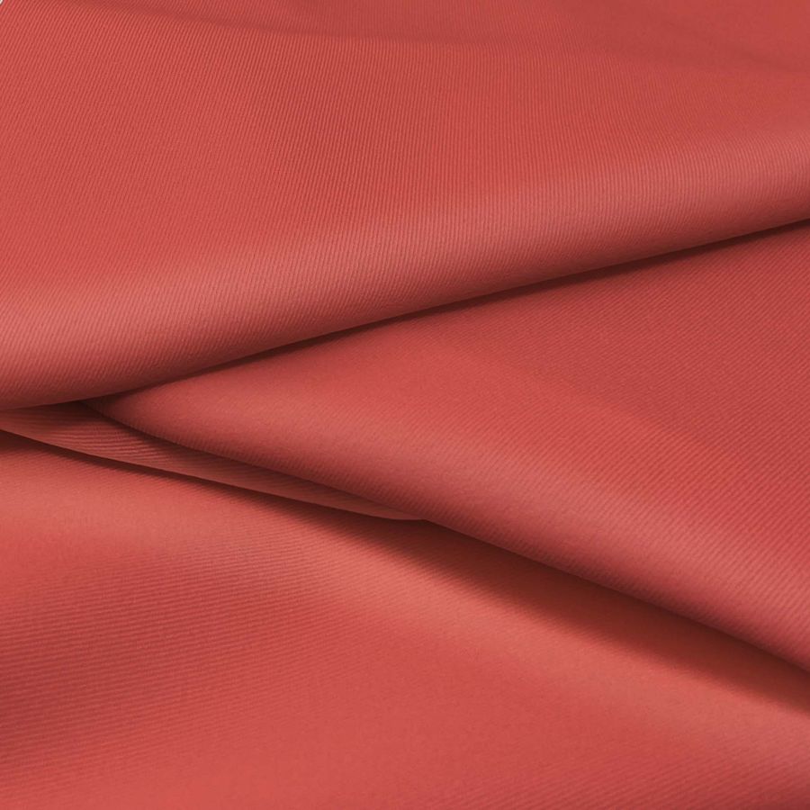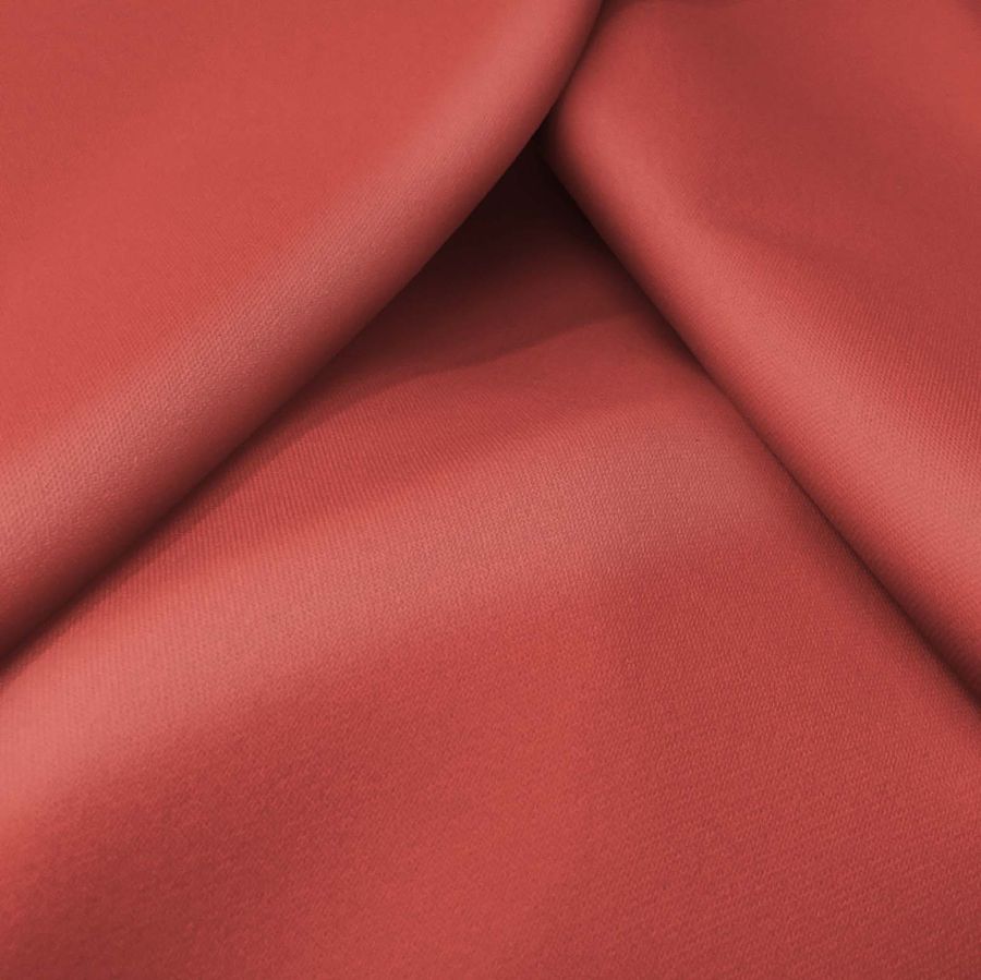 La tela base Sarga Bielástica - Lisboa tiene una composición de 97% POLIÉSTER y 3% ELASTANO con un gramaje de 209 gr/m2 y un ancho de 150 cm. Se imprime con un color liso de tonalidad roja mate, con un CMYK de 15 80 69 4. Este color rojizo contrasta perfectamente con colores oscuros como el negro, también se combina bien con tonalidades marrones y cremas. Es importante destacar que este tejido está impreso con el color liso a una sola cara por impresión digital textil, lo que significa que no es un tejido tintado, sino impreso.