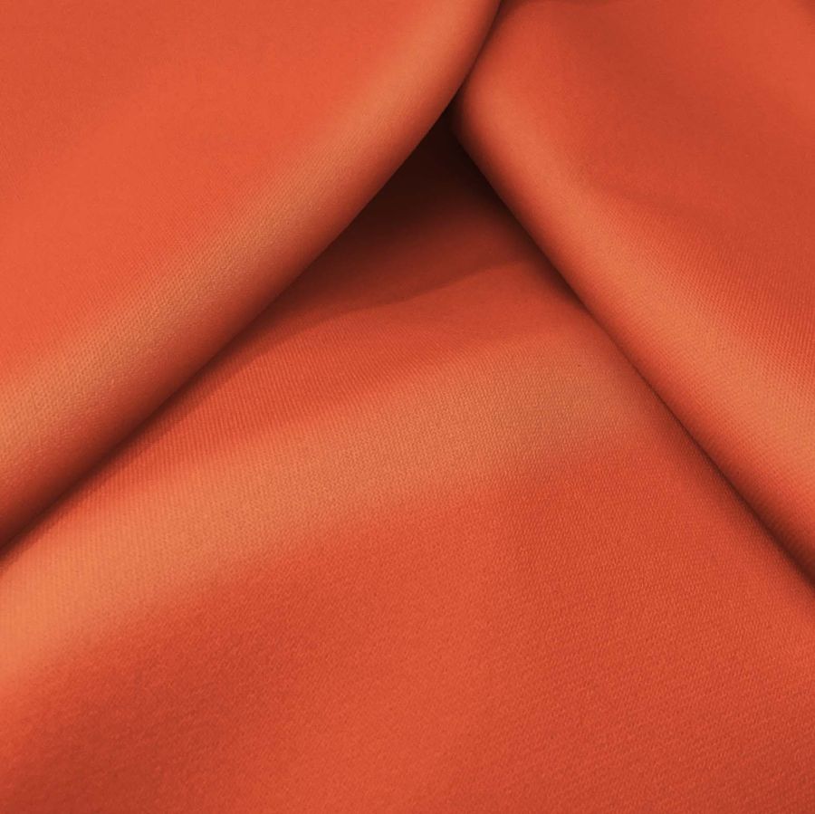 La tela base, Sarga Bielástica - Lisboa, tiene una composición de 97% de poliéster y 3% de elastano con un peso de 209 gr/m2 y un ancho de 150 cm. Su color liso impreso tiene un tono rojo anato con un CMYK de 0 78 74 0. Este color secundario es una mezcla de tonos terrosos con matices anaranjados y granates, ideal para diseños cálidos y naturales. Este color combina perfectamente con tonos tierra como el marrón, beige y naranja.