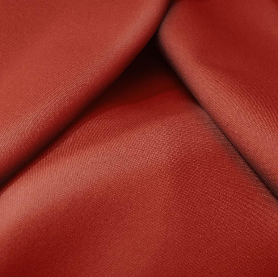 La tela base de este tejido es la Sarga Bielástica - Lisboa, con una composición de 97% poliéster y 3% elastano. Su gramaje es de 209 gr/m2 y tiene un ancho de 150 cm. El color liso impreso es Naranja Ladrillo Refractario, con un CMYK de 28 99 100 34. Este color se caracteriza por ser intenso y cálido, con un tono terroso y una ligera nota de rojo. Combina perfectamente con tonos neutros como el beige, el blanco y el gris, así como con verdes y azules oscuros.