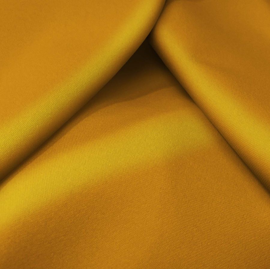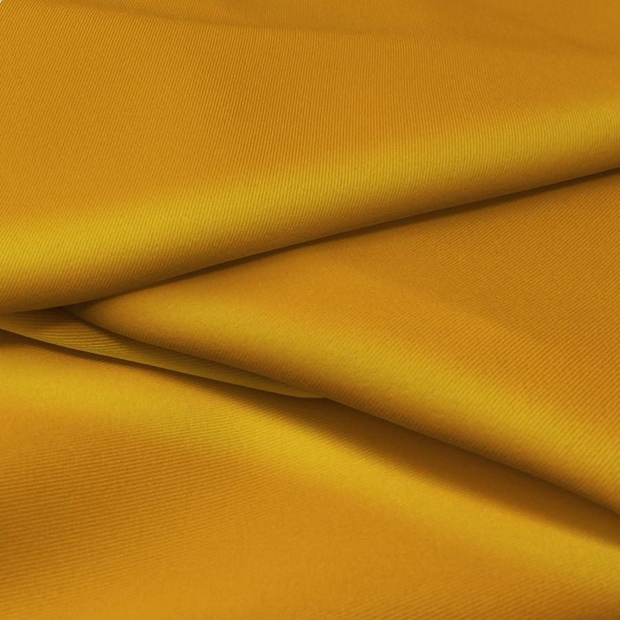 La tela base Sarga Bielástica - Lisboa tiene una composición de 97% poliéster y 3% elastano, con un gramaje de 209 gr/m2 y un ancho de 150 cm. El color liso impreso en esta tela es un naranja Mandarina oscuro, con una proporción de tinta cian de 17%, tinta magenta de 55%, tinta yellow de 99% y tinta black de 6%, que en el modelo CMYK se puede apreciar una combinación de 17 55 99 6. El color se describe por ser vivo y luminoso, ideal para ambientes cálidos. Este color secundario combina con tonalidades similares como el amarillo cálido y el rojo oscuro para crear contrastes energéticos y contrastantes.