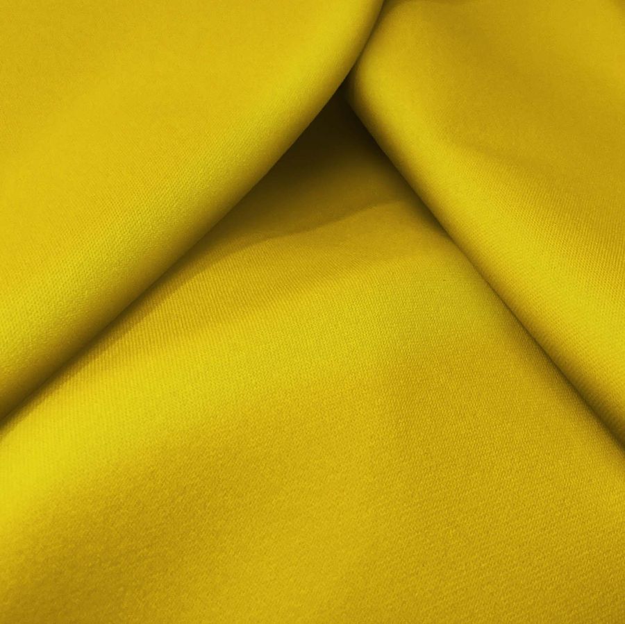 La Sarga Bielástica - Lisboa es una tela de sarga compuesta por un 97% de poliéster y un 3% de elastano, con un gramaje de 209 gr/m2 y un ancho de 150 cm. Su color base es liso, impreso en naranja dorado mediante la tecnología de sublimación con los siguientes valores de CMYK: 7 29 94 0. Este color secundario es vibrante y cálido, evocando la energía y la vitalidad del sol. Combinado con tonos neutros y terrosos, como el blanco, el gris, el marrón y el beige, este color liso puede dotar de personalidad y estilo a cualquier prenda o accesorio.