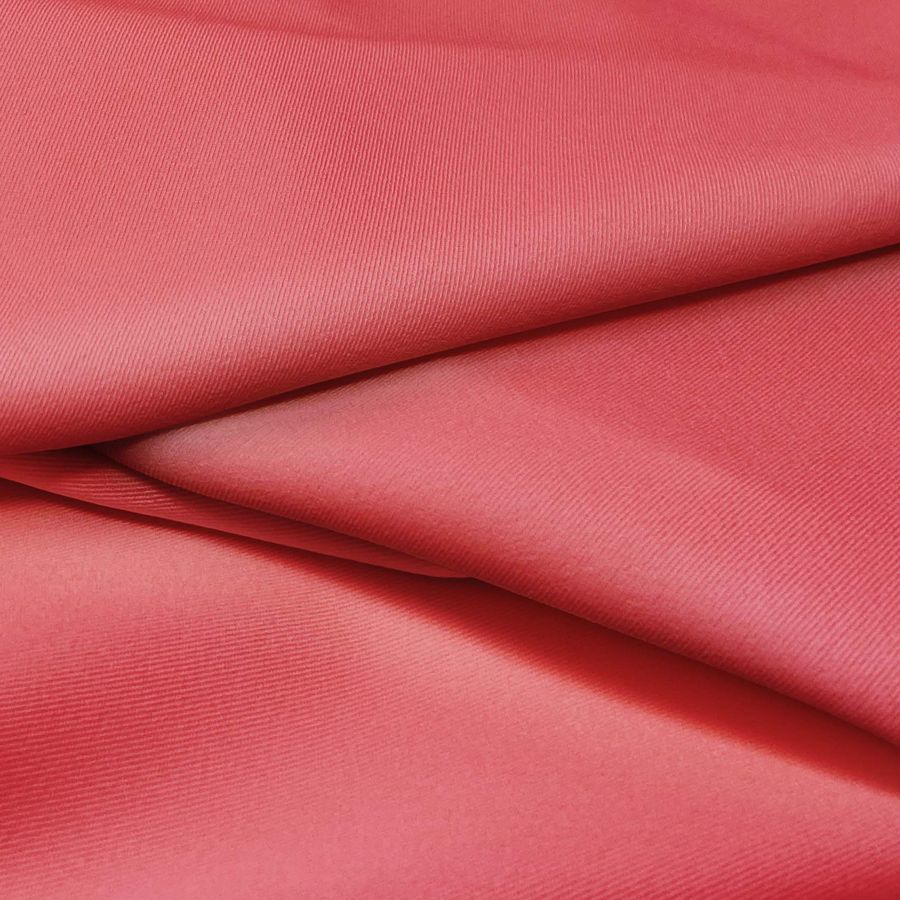 La tela base, Sarga Bielástica - Lisboa, se compone de un 97% de poliéster y un 3% de elastano, con un gramaje de 209 gr/m2 y un ancho de 150 cm. Aporta un tacto rugoso, elástico y suave a la vez. El color liso impreso es Rosa, Laca de Granza, con una mezcla de tintas CMYK (Cyan: 11, Magenta: 85, Yellow: 64, Black: 2). Este color es una combinación atractiva y simbólica que representa la fortaleza, la elegancia y la delicadeza a la vez. El rosa laca es atemporal, fácil de combinar con otros colores, como grises, blancos, negros, verdes claros, beiges o dorados, para diferentes efectos y estilos.