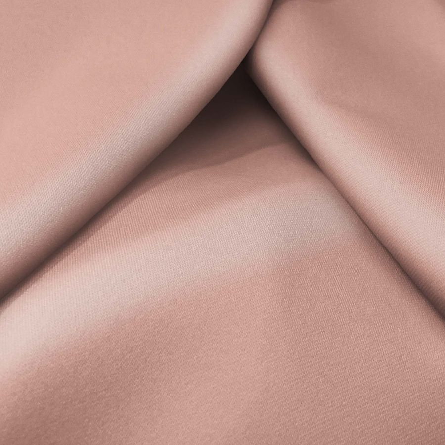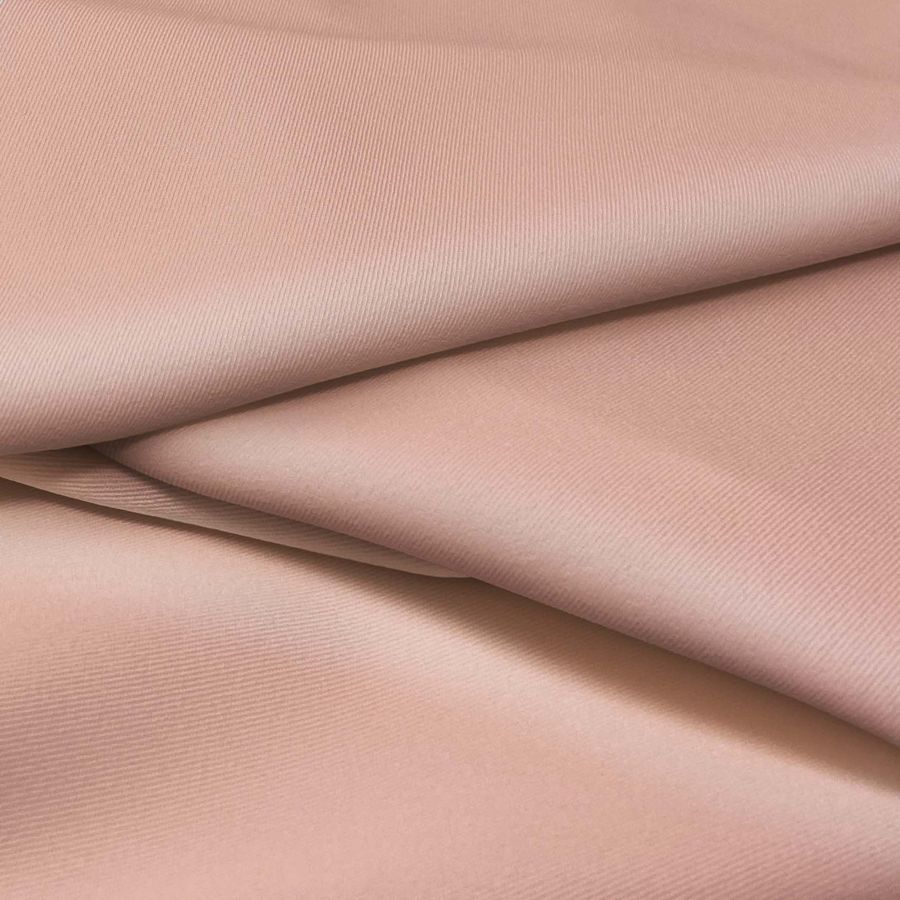 La tela base, Sarga Bielástica - Lisboa, está compuesta por un 97% de poliéster y un 3% de elastano, lo que le confiere una textura elástica suave y rugosa al tacto. Su gramaje es de 209 gr/m2 y tiene un ancho de 150 cm. El color liso impreso es de tonalidad rosa caramelo, con un CMYK de 7 42 36 0, lo que le otorga una sobriedad atractiva y elegante. Este color se combina especialmente bien con tonos marrones y verdes, aunque también puede utilizarse en combinación con colores más vivos para obtener contrastes interesantes. La impresión se realiza con tecnología de sublimación, en una sola cara, lo que permite alcanzar una gran nitidez y realismo en el dibujo impreso.