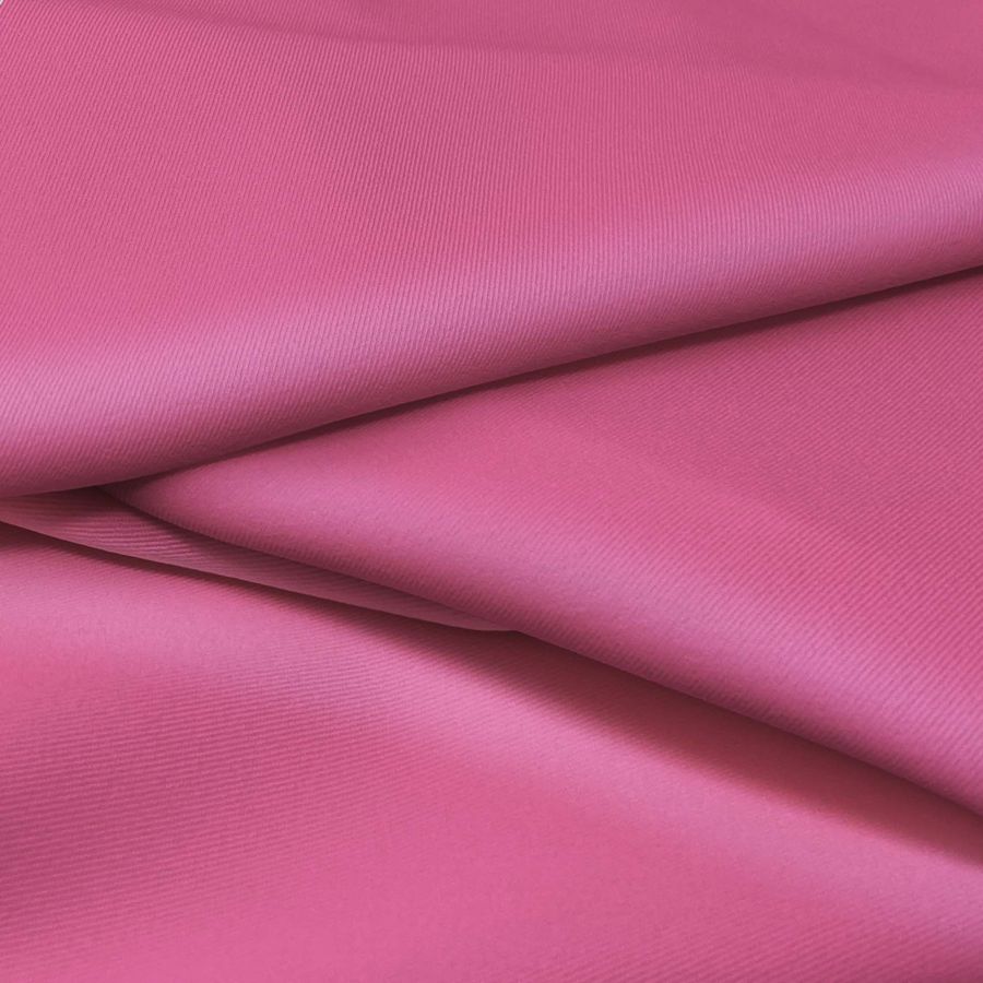 La tela base, Sarga Bielástica - Lisboa, es una sarga compuesta por 97% poliéster y 3% elastano, con un gramaje de 209 gr/m2 y un ancho de 150 cm. El color liso impreso en esta tela es Rosa Fandango, con un CMYK de 9 76 22 1. Este color es vibrante y audaz, con un tono rosado intenso que evoca alegría y vitalidad. Los colores que mejor combinan con este rosa fucsia son los tonos beige y grisáceos, que suavizan el tono y crean un contraste elegante.