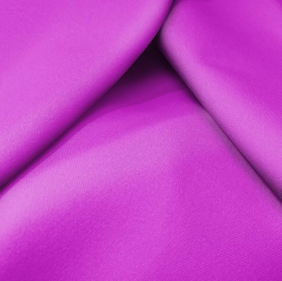 La tela base, Sarga Bielástica - Lisboa, tiene una composición de 97% poliéster y un 3% de elastano, lo que le confiere una elasticidad necesaria para prendas de vestir cómodas y adaptables al cuerpo. Tiene un gramaje de 209 gr/m2 y un ancho de 150 cm. El color liso impreso en esta tela es rosa, de acero, lo que se corresponde con una tinta cian del 47 y una tinta magenta del 80 en el CMYK. Este color se presenta en un tono suave y elegante, que se puede combinar con otros colores como el blanco, el negro, el gris o el azul oscuro.