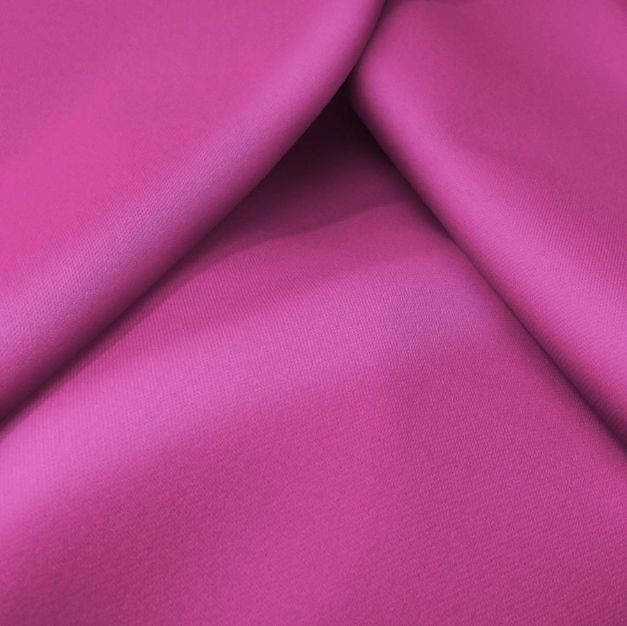 La tela base es la Sarga Bielástica - Lisboa, compuesta en un 97% de POLIÉSTER y un 3% de ELASTANO, con un gramaje de 209 gr/m2 y una anchura de 150 cm. El color liso impreso es de un tono Rosa Pantone, con un CMYK de 12 83 0 0, y está impreso por una sola cara mediante impresión digital textil. Esta tonalidad es un rosa intenso y vibrante, que simboliza la dulzura y la pasión, y que combina perfectamente con tonos neutros como el blanco y el gris, así como con tonos oscuros como el negro y el azul marino.
