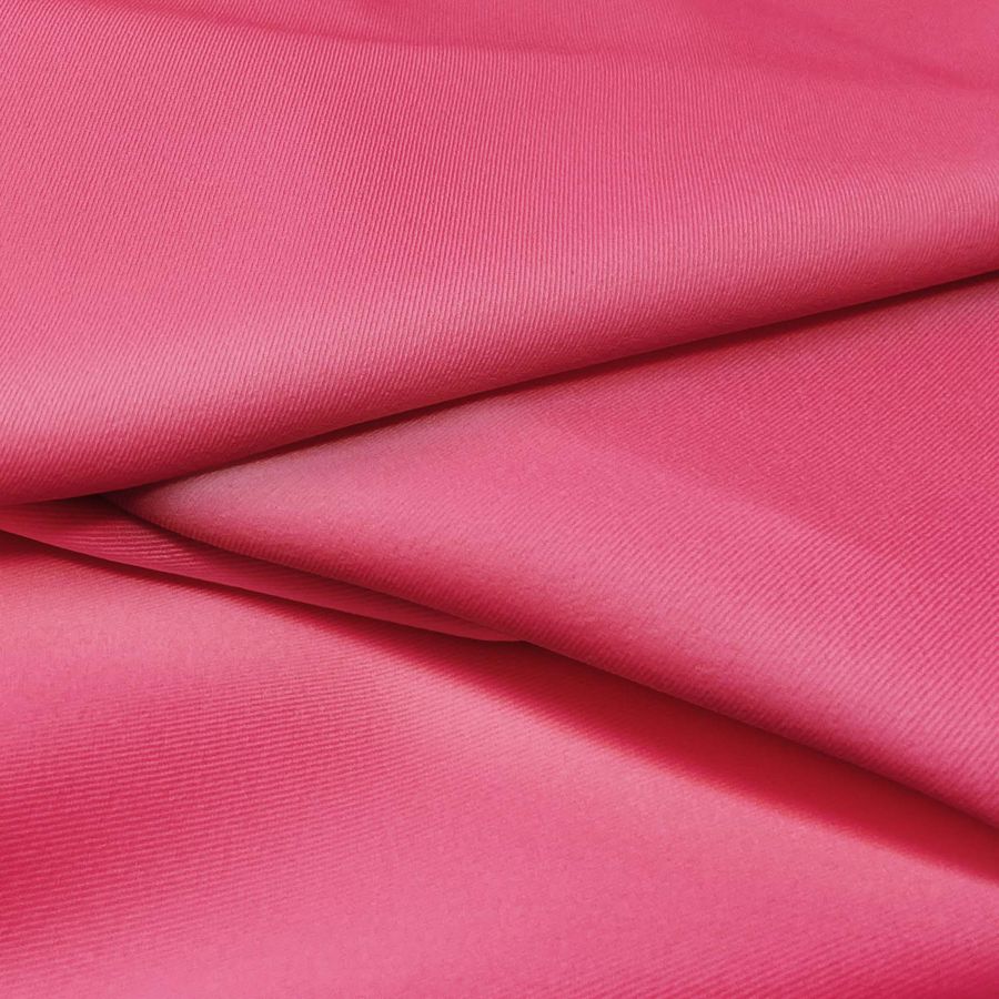 La tela base es la Sarga Bielástica - Lisboa, compuesta por 97% poliéster y 3% elastano con un gramaje de 209 gr/m2 y un ancho de 150 cm. El color liso impreso es Rosa Paraíso, con una mezcla de tintas CMYK de 1 de cyan, 87 de magenta, 43 de yellow y 0 de black. Es un color vibrante y cálido, que remite al paraíso terrenal y a la vitalidad de la naturaleza en primavera. Combina especialmente bien con tonos de verde, turquesa y amarillo.
