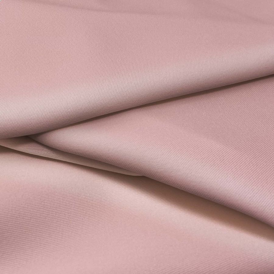 La tela base es la Sarga Bielástica - Lisboa, una sarga compuesta por un 97% de poliéster y un 3% de elastano, con un gramaje de 209 gr/m2 y un ancho de 150 cm. Este tejido es perfecto para la confección de prendas de vestir, accesorios y textiles para el hogar gracias a su versatilidad y resistencia a la deformación. El color liso impreso es de color rosa pastel, con un CMYK de 12 42 28 1, el cual combina a la perfección con colores como el gris o el blanco. Es importante mencionar que la tela está impresa con el color liso a una sola cara por impresión digital textil, lo que significa que no es un tejido tintado, sino impreso por una sola cara.