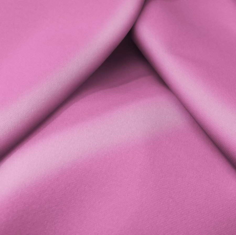 La tela base es la Sarga Bielástica - Lisboa, compuesta por 97% poliéster y 3% elastano, con un gramaje de 209 gr/m2 y un ancho de 150 cm. El color liso impreso es Rosa Persa, con un CMYK de 3 62 0 0, que se combina especialmente bien con tonos neutros como grises y beige y con colores fucsia y morados. Esta tela está impresa con el color liso a una sola cara por impresión digital textil.