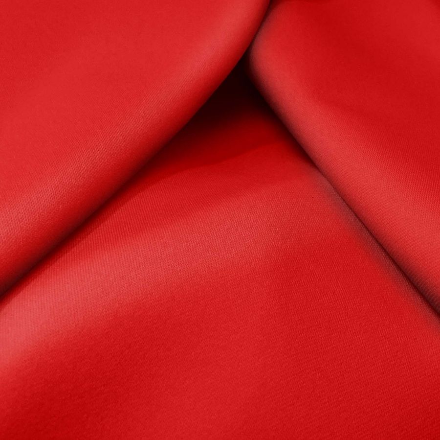 La tela base es la Sarga Bielástica - Lisboa, con una composición de 97% poliéster y 3% elastano, y un gramaje de 209 gr/m2. El color liso impreso es de tono rosa-rojizo, con un CMYK de 12 100 100 4. Este color refleja una tinta cyan bajo, una alta tinta magenta y amarilla, y una baja tinta negra.