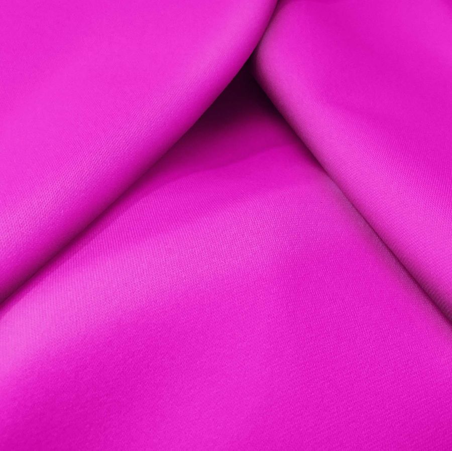 La tela base Sarga Bielástica - Lisboa tiene una composición de 97% poliéster y 3% elastano con un gramaje de 209 gr/m2 y un ancho de 150 cm. Su color liso impreso es rosa shocking con un CMYK de 22 83 0 0. Este color transmite una sensación de vivacidad y energía. Se combina especialmente bien con tonos neutros como el blanco y el gris, pero también puede complementarse con colores más cálidos como el amarillo o el naranja.