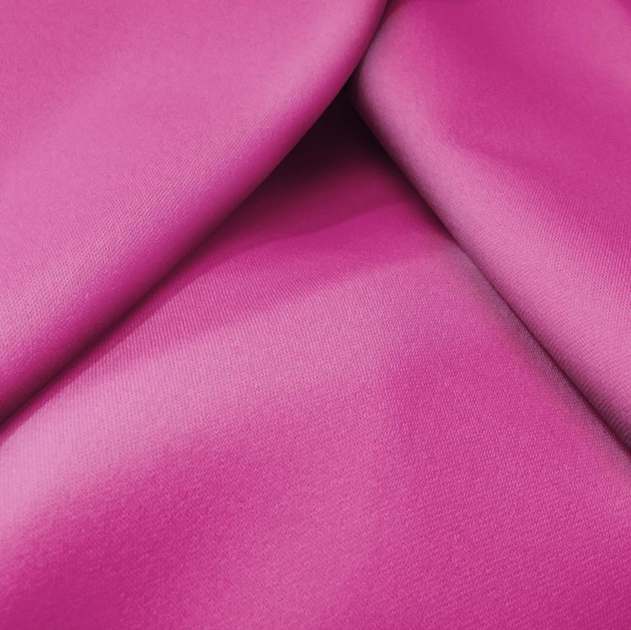 La tela base es Sarga Bielástica - Lisboa, con una composición de 97% poliéster y 3% elastano, un gramaje de 209 gr/m2 y un ancho de 150 cm. El color liso impreso es Rosa Smitten, con un CMYK de 21, 85, 11, 1. El color se caracteriza por su tonalidad suave y agradable al tacto, enfatizando el sentimiento de ternura y feminidad. Combina bien con colores similares, como el lila y el magenta, y también con tonos neutros, como el gris y el beige.