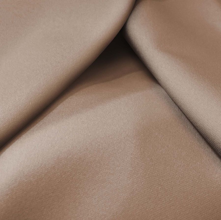 La tela base es la Sarga Bielástica - Lisboa, compuesta de 97% poliéster y 3% elastano, de gramaje 209 gr/m2 y ancho de 150 cm, con cuidados que incluyen no blanquear, lavar a máximo 30ºC, admite limpieza en seco salvo tricloroetileno, planchar a temperatura fría y no se puede secar con secadora. Es un tejido versátil, con aplicaciones para moda de mujer y hombre, textil de hogar y decoración, entre otros. Su color base es un marrón adobe impreso con tinta cyan (35), magenta (45), yellow (51) y black (28), con un CMYK de 35 45 51 28. En combinación con otros colores, puede complementarse con tonos verde, beige, naranja o gris. La tela base tiene una textura rugosa y elástica, y un tacto suave. El color liso impreso es de una sola cara, por impresión digital textil. Se recomienda tener cuidado al lavar y planchar el tejido. La tecnología de impresión utilizada es la sublimación, propia para el poliéster, que implica un proceso en el que se imprimen los diseños en papel transfer para luego transferirlos a la tela mediante calor elevado.