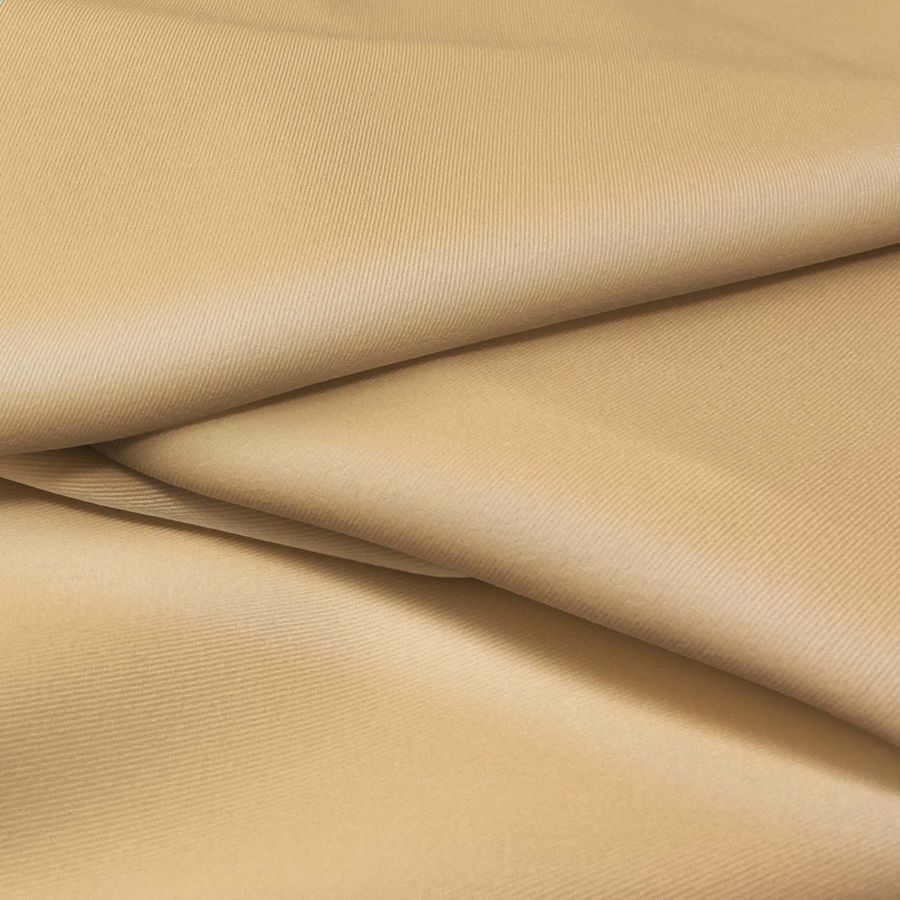 La tela base, una Sarga Bielástica - Lisboa, está compuesta en un 97% por poliéster y un 3% de elastano, con un gramaje de 209 gr/m2 y un ancho de la tela de 150 cm. El color liso impreso es un Marrón Caramelo, su CMYK es 7 33 56 1 y se imprime con tecnología de sublimación en el poliéster de la tela. La textura de la tela se percibe como rugosa, elástica y suave al tacto.