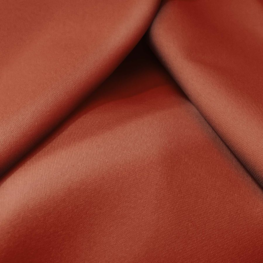 La tela base es la Sarga Bielástica - Lisboa, de composición 97% POLIÉSTER y 3% ELASTANO, con un gramaje de 209 gr/m2 y una anchura de 150 cm. El color liso impreso, llamado Marrón Kobe, tiene un CMYK de 29 89 96 34. En cuanto a su descripción simbólica, el Marrón Kobe expresa estabilidad, seguridad y formalidad, siendo un color muy utilizado en la moda masculina y en la decoración de interiores. Técnicamente hablando, es un color oscuro de tonalidad cálida con un alto contraste entre la tinta magenta y amarilla, dando un aspecto terroso y tostado. Combina muy bien con tonos complementarios como el verde oscuro o el beige, y colores análogos como el marrón claro y el naranja quemado.