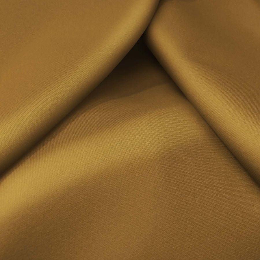 La tela base es la Sarga Bielástica - Lisboa, compuesta por 97% de poliéster y 3% de elastano, con un gramaje de 209 gr/m2 y un ancho de 150 cm. El color liso impreso es Marrón Dorado con el siguiente CMYK: 31 52 84 30. Este color proporciona un aspecto elegante, sofisticado y versátil, combinable con tonalidades claras y oscuras para lograr contrastes armónicos. Se imprime a una sola cara por impresión digital textil. La tela base se destaca por ser rugosa y elástica, dando una sensación suave al tacto. La aplicación del tejido es muy versátil permitiendo su uso en la fabricación de pantalones, accesorios, faldas, vestidos, cojines, bastidores, almohadas, servilletas, entre otros. Sus cuidados son sencillos, se recomienda lavar a una temperatura máxima de 30ºC y planchar a temperatura fría. El tejido es producido a través de la tecnología de impresión por sublimación, en la que se transfiere la tinta del papel al tejido por medio del calor, logrando una alta definición y nitidez en los diseños.
