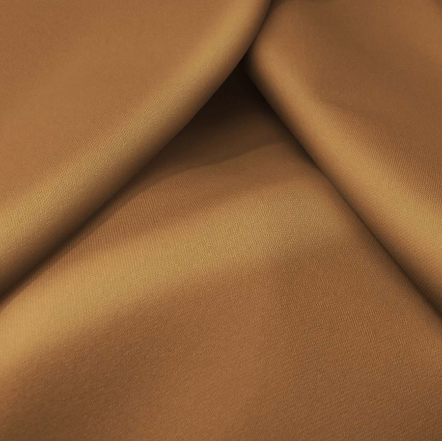 La tela base de esta prenda es una Sarga Bielástica - Lisboa, compuesta por 97% poliéster y 3% elastano, con un gramaje de 209 gr/m2 y un ancho de 150 cm. El color liso impreso es un Marrón Otoño con valores de CMYK: 29 56 77 26. Este tono se caracteriza por ser cálido y acogedor, perfecto para prendas o textiles de decoración. Además, combina muy bien con tonos dorados, verdes y grisáceos. Es importante destacar que la tela está impresa a una sola cara por impresión digital textil.