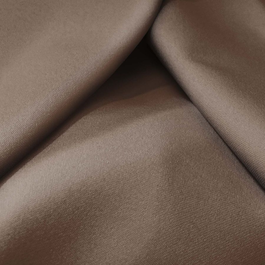 La tela base es la Sarga Bielástica - Lisboa, compuesta por un 97% de poliéster y un 3% de elastano, con un gramaje de 209 gr/m2 y un ancho de 150 cm. El color liso impreso es de tonalidad marrón sepia, reflejando el contenido del CMYK de 45 53 58 50. Este color evoca elegancia y sofisticación, combinando especialmente bien con tonos neutros y tierra como el beige o el crema. Cabe destacar que la tela está impresa con el color liso a una sola cara por impresión digital textil, por lo que es importante tener en cuenta que el otro lado de la tela es de color natural.
