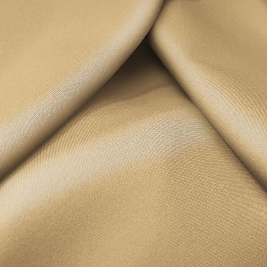La tela base Sarga Bielástica - Lisboa es una sarga de poliéster (97%) y elastano (3%), con 209 gr/m2 de gramaje y un ancho de 150 cm. Su color liso impreso es Marron Ocre Carne, cuyo CMYK es 10 30 55 1, con un tono cálido y terroso que combina bien con tonos tierra, neutros o marrones más oscuros. La tela está impresa a una sola cara por impresión digital textil. La tela base presenta una textura rugosa, elástica y suave al tacto. Entre sus aplicaciones destacan moda (pantalones, faldas, jeans, vestidos, shorts/bermudas, accesorios), textil/hogar (cocina, dormitorio, salón, comedor) o decoración (bastidores, cuadros, cojines). Con respecto a los cuidados, se recomienda no blanquear, lavar a una temperatura máxima de 30ºC, limpieza en seco salvo tricloroetileno, planchado a temperatura fría y no secar con secadora. La tecnología de impresión utilizada es la sublimación, una técnica de impresión por transferencia de tinta a través del calor y la presión.