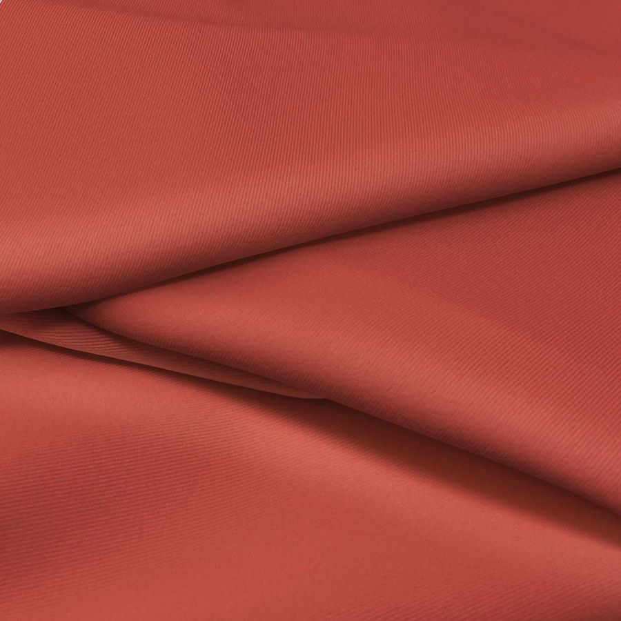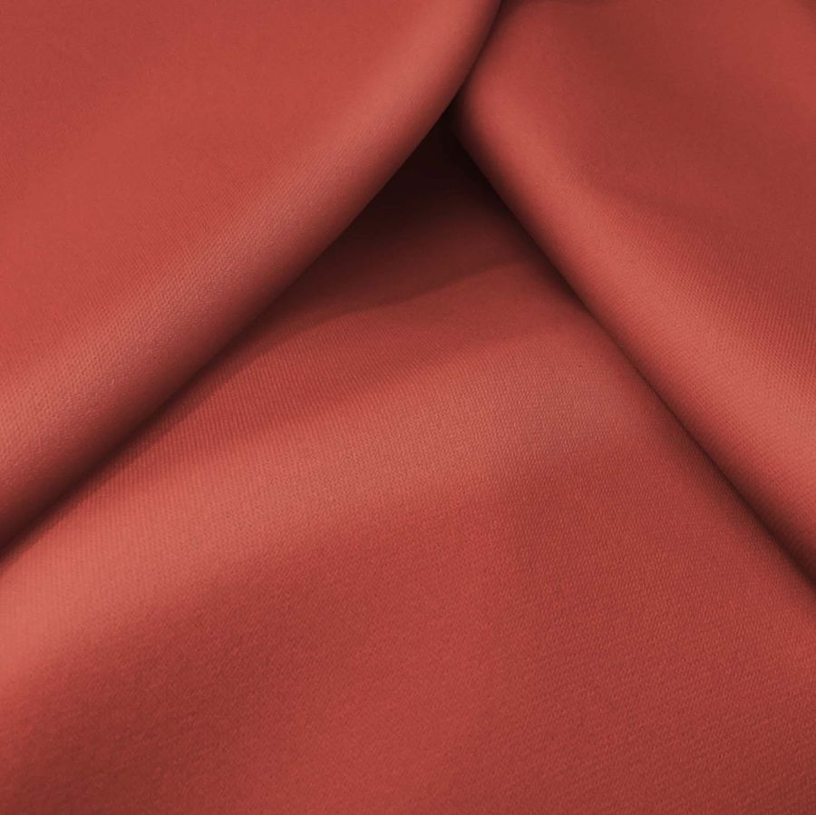 La tela base es la Sarga Bielástica - Lisboa, compuesta por un 97% de poliéster y un 3% de elastano. Su gramaje es de 209 gr/m2 y su ancho de 150 cm. El color liso impreso es una combinación de marrón, ocre y rojo luminoso con un CMYK de 22-81-73-12. Este color secundario se relaciona con la pasión, la vitalidad y la calidez, siendo ideal para la moda y la decoración. Además, combina especialmente bien con tonos neutros como el gris y el beige.
