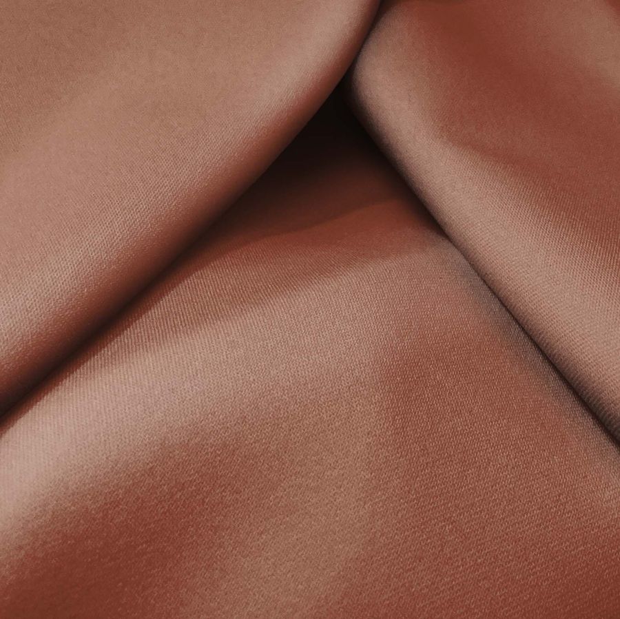 La tela base es la Sarga Bielástica - Lisboa, compuesta por un 97% de poliéster y un 3% de elastano, con un peso de 209 gr/m2 y un ancho de 150 cm. El color liso impreso de la tela es un marrón pátina, cuyos valores CMYK son 33 65 67 38, lo que le confiere un carácter profundo y elegante. Además, este color se combina perfectamente con tonos ocres y tierras de la misma paleta cromática.
