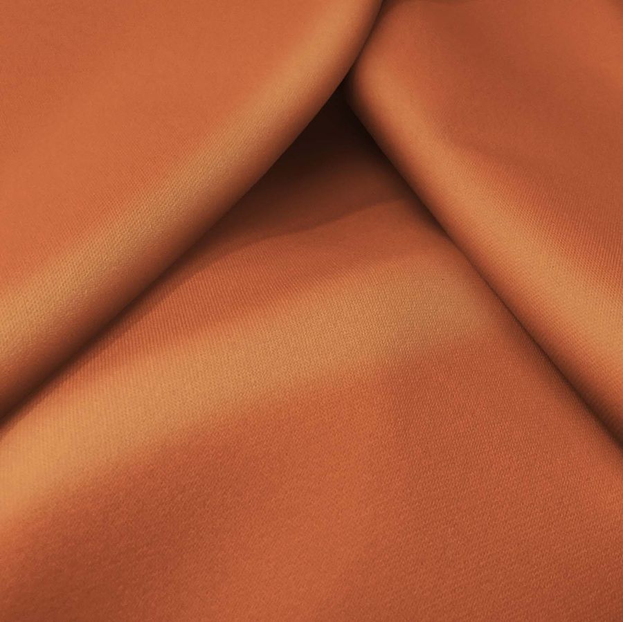 La tela base de este tejido es la Sarga Bielástica - Lisboa, de composición 97% POLIÉSTER y 3% ELASTANO, con un gramaje de 209 gr/m2 y ancho de 150 cm. El color liso impreso es Marron Siena Tostada con un CMYK de 15 70 80 4, lo cual da como resultado un tono marrón tostado cálido.