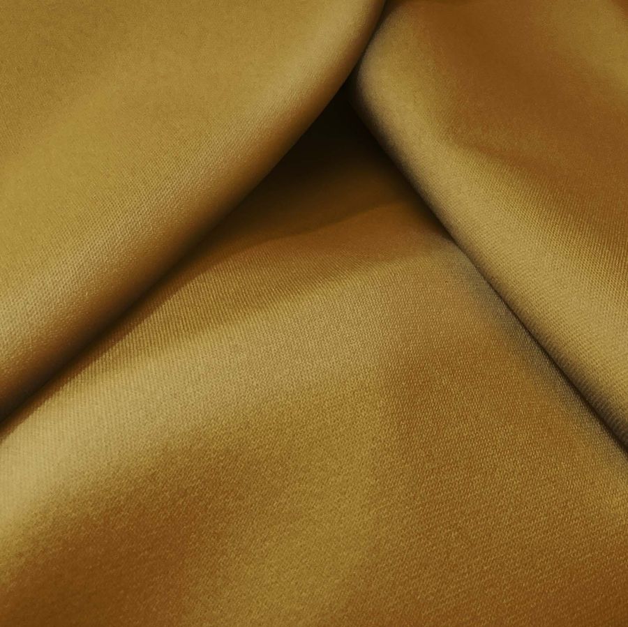 La tela base Sarga Bielástica - Lisboa es un tejido de composición 97% poliéster y 3% elastano con un gramaje de 209 gr/m2 y un ancho de 150 cm. El tono liso impreso presenta un color marrón sucio con tintas Cian: 35, Magenta: 53, Amarillo: 100, Negro: 39, con un CMYK de 35 53 100 39. Este color secundario, al igual que la tela base, tiene una textura suave al tacto y es elástico gracias a la composición de elastano presente en la tela base. El color marrón sucio combina particularmente bien con tonos amarillos, naranjas y claros.