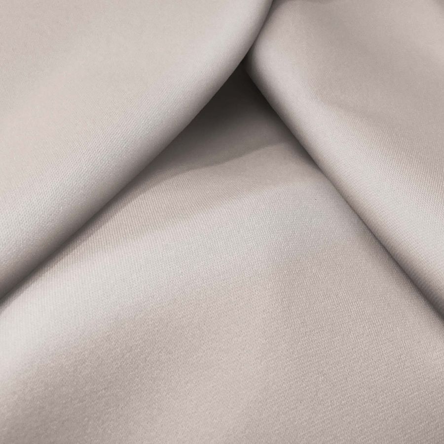La tela base de este tejido es la Sarga Bielástica - Lisboa, compuesta por un 97% de poliéster y un 3% de elastano, con un gramaje de 209 gr/m2 y un ancho de 150 cm. Su color liso impreso es Marrón Taupe Pálido, que se consigue mediante la combinación de 12% de tinta cyan, 19% de tinta magenta, 20% de tinta yellow y 0% de tinta black, lo que da como resultado un tono cálido y elegante con cierta sub-tonalidad pálida. Este color combina especialmente bien con tonos beige, grises oscuros y dorados.