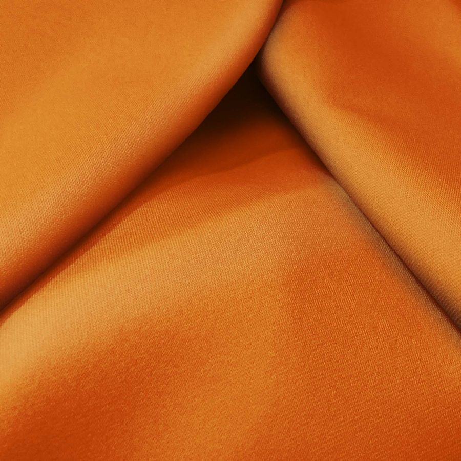 La tela base en cuestión es la Sarga Bielástica - Lisboa, compuesta por 97% poliéster y 3% elastano, con un gramaje de 209 gr/m2 y un ancho de 150 cm. El color liso impreso es un marrón tenne con un CMYK de 15 74 100 4, lo que refleja una mezcla de tonos cálidos y rojizos. Este color secundario evoca a la tierra y la naturaleza, transmitiendo un sosegado sentido de estabilidad y robustez. Este color combina en particular con otros tonos marrones, negros, cremas y grises cálidos.