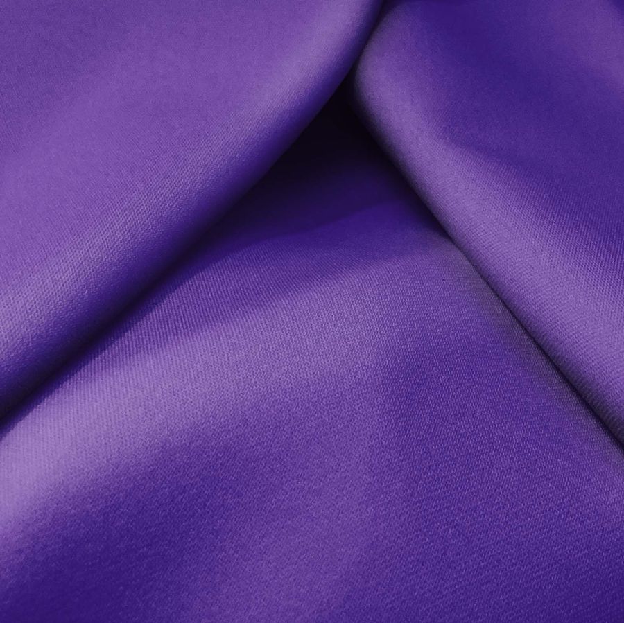 La tela base de este tejido es la Sarga Bielástica - Lisboa, compuesta por un 97% de poliéster y un 3% de elastano, con un gramaje de 209 gr/m2 y ancho de 150 cm. El color liso impreso en esta tela es una combinación de tonos morados, violetas y azules, con un CMYK de 88 99 3 1. Este color secundario se asocia con la imaginación, la creatividad y la intuición, y combina de forma ideal con tonos neutros como el blanco y el gris, así como con tonos fuertes como el rojo o el naranja.