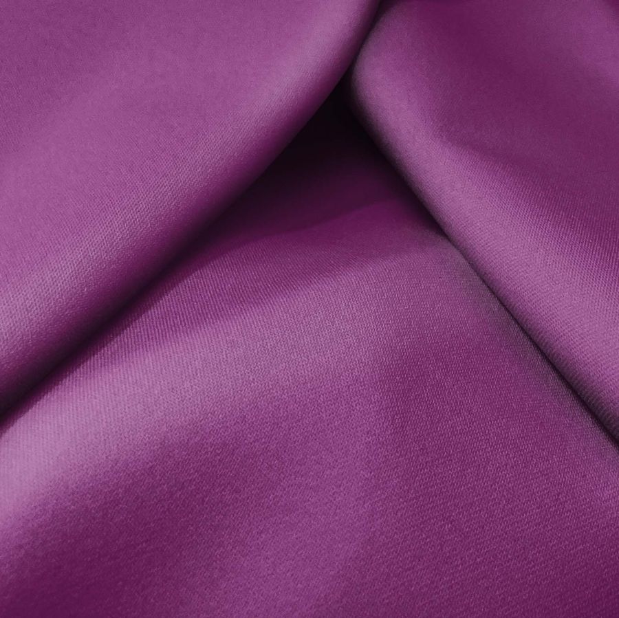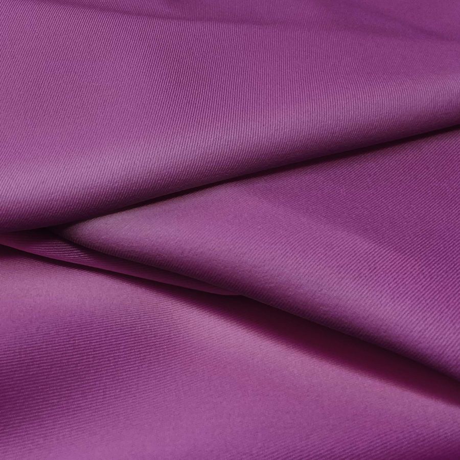 La tela base de este tejido es la Sarga Bielástica - Lisboa, compuesta por un 97% de poliéster y un 3% de elastano, con un gramaje de 209 gr/m2 y un ancho de 150 cm. El color liso impreso en este tejido es Morado Bizantino, con una tinta Cyan de 62, una tinta Magenta de 95, una tinta Yellow de 26 y una tinta Black de 17, lo que da como resultado un CMYK de 62 95 26 17. Este color secundario, morado bizantino, es un tono púrpura oscuro y elegante que simboliza la riqueza y la sofisticación. Combina perfectamente con otros colores como el oro, el blanco, el rosa, el lila y el gris.