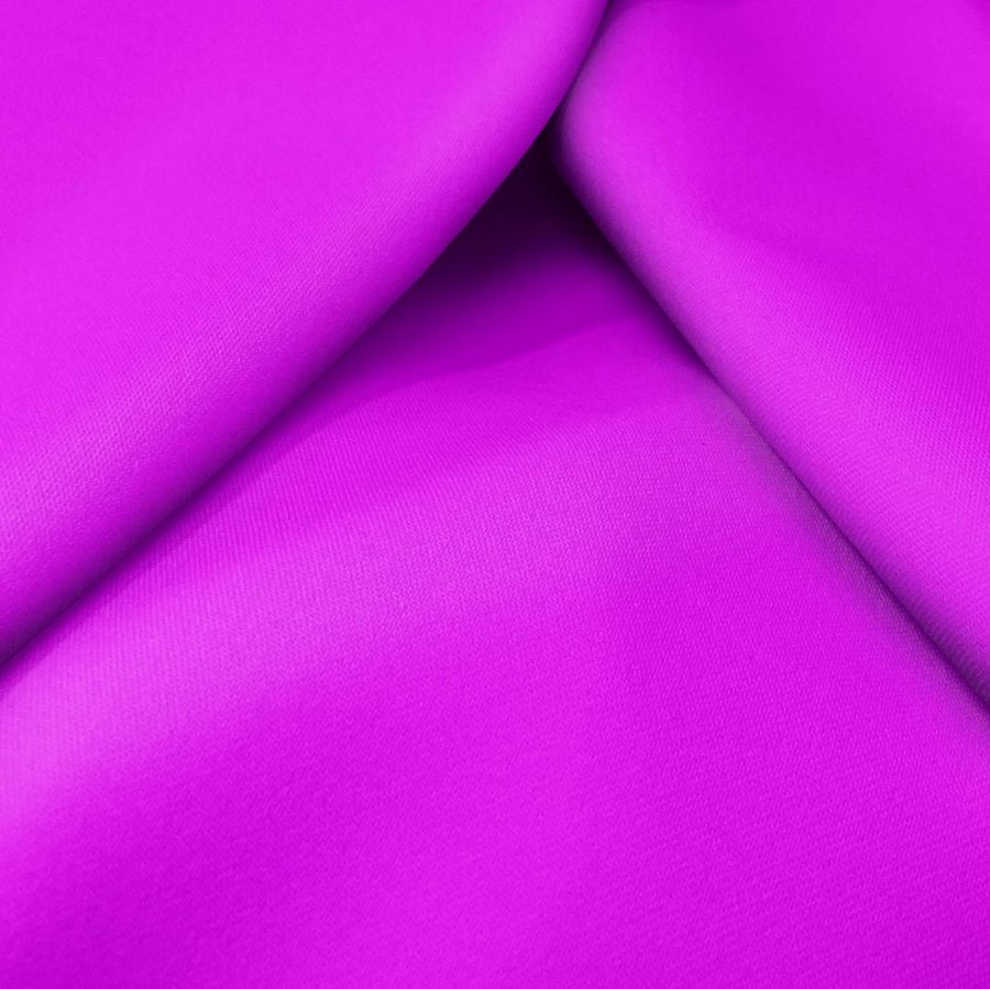 La tela base es la Sarga Bielástica - Lisboa, compuesta por un 97% de poliéster y un 3% de elastano, con un gramaje de 209 gr/m2 y un ancho de 150cm. Su color liso impreso es Morado Flox, con un CMYK de 53 80 0 0. Este color se define por su tonalidad púrpura intensa, con matices rosados y azules que le aportan profundidad visual. Entre los colores que mejor combinan con el Morado Flox se encuentran los grises, verdes y amarillos suaves, para crear conjuntos armoniosos y equilibrados. La tela está impresa con el color liso a una sola cara por impresión digital textil, lo que permite un acabado nítido y de alta calidad.